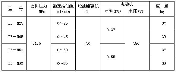 DB-N型單線潤(rùn)滑泵適用于潤(rùn)滑頻率低、公稱壓力在31.5Mpa以下的單線小型潤(rùn)滑系統(tǒng)中,通過(guò)單線分配器向各潤(rùn)滑點(diǎn)供送潤(rùn)滑脂的供油裝置。特別適用于冶金、礦山、重機(jī)、港口及運(yùn)輸建筑等單機(jī)設(shè)備。