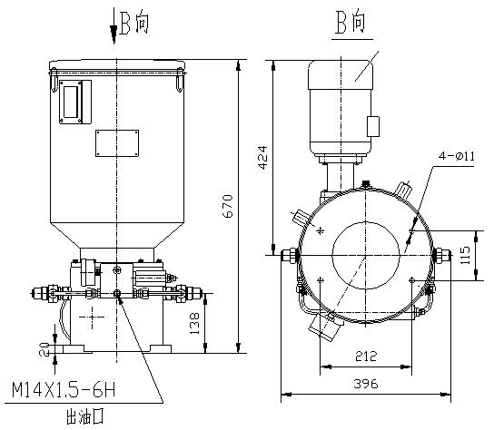 兩個(gè)壓油泵壓送出的油脂通過(guò)集油閥合并成一路,且閥上裝有壓力表和調(diào)壓閥,可方便的觀察泵的出油壓力和調(diào)定泵的最大出油壓力。