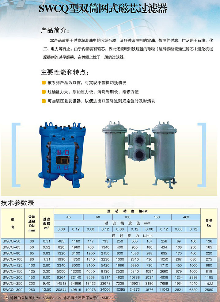 SWCQ型雙筒網(wǎng)式磁芯過濾器