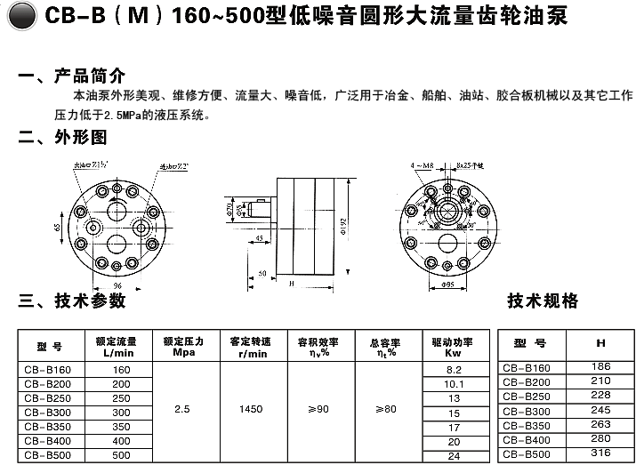 CB-B(M)160~500型低噪音圓形大流量齒輪油泵